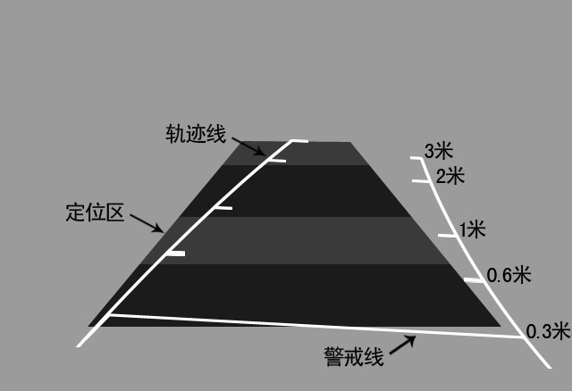 定位區(qū):當(dāng)車輪方向打正時(shí),車身將會(huì)經(jīng)過的位置,用于泊車位置參考。