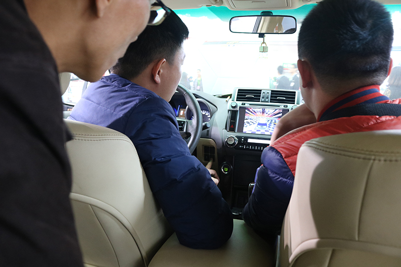 道可視這次展會(huì)主推的超清360度全景影像系統(tǒng),其清晰度達(dá)到1080P。不僅僅是清晰度的提升,更解決了因?yàn)橐挂暷芰Σ蛔愣_車主的夜間泊車、倒車難題;四路攝像頭實(shí)時(shí)錄像,智能震動(dòng)鎖定技術(shù),3D全景泊車,24小時(shí)不間斷泊車監(jiān)控等功能吸引了一大批客商的駐足參觀,在展車體驗(yàn)過(guò)程中對(duì)我們?nèi)诵曰腢I交互設(shè)計(jì)和便捷的功能操作贊賞有加。