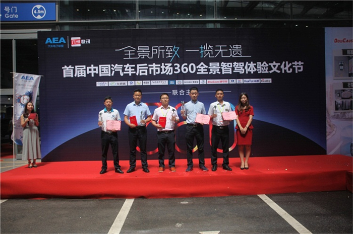 在此次秋季展中還開展了“首屆中國汽車后市場(chǎng)360全景智駕體驗(yàn)文化節(jié)”,深圳道可視科技有限公司劉經(jīng)理(左四)出席文化節(jié)開幕。