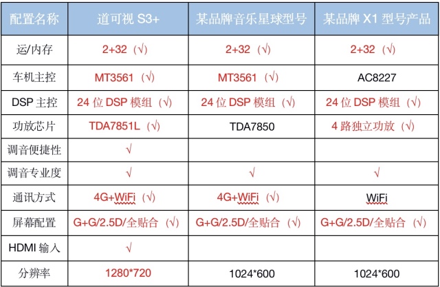 那么,道可視S3+音樂(lè)車(chē)機(jī)到底有什么料呢?空口無(wú)憑,小編直接拿它和業(yè)內(nèi)同屬高端配置的其他品牌產(chǎn)品進(jìn)行對(duì)比。