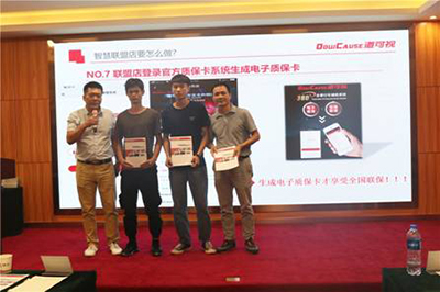 在隨后,廣州麗影豪車匯道可視項(xiàng)目負(fù)責(zé)人粟庚泉也上臺(tái)進(jìn)一步表示,為了降低門店銷售門檻,同時(shí)也給消費(fèi)者帶來更專業(yè)的安裝服務(wù),將由當(dāng)?shù)爻鞘羞\(yùn)營商對產(chǎn)品進(jìn)行安裝服務(wù),在智慧聯(lián)盟店內(nèi)完成安裝。而當(dāng)銷售完成后,聯(lián)盟店登陸官方質(zhì)??ㄏ到y(tǒng)生成電子質(zhì)???/span>,輕松享受全國聯(lián)保。